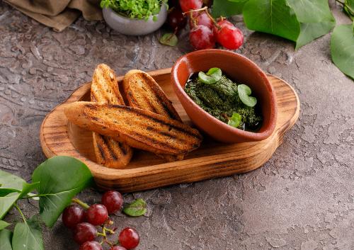 Яркая закуска из базилика, кинзы, шпината и грецкого ореха.