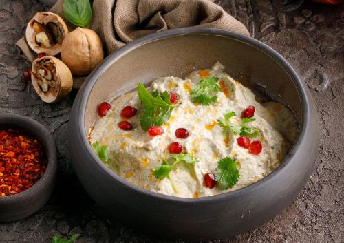 Нежная мякоть цыплёнка в ореховом соусе. Секрет этого блюда в длительном томлении, благодаря чему мясо буквально тает во рту.
