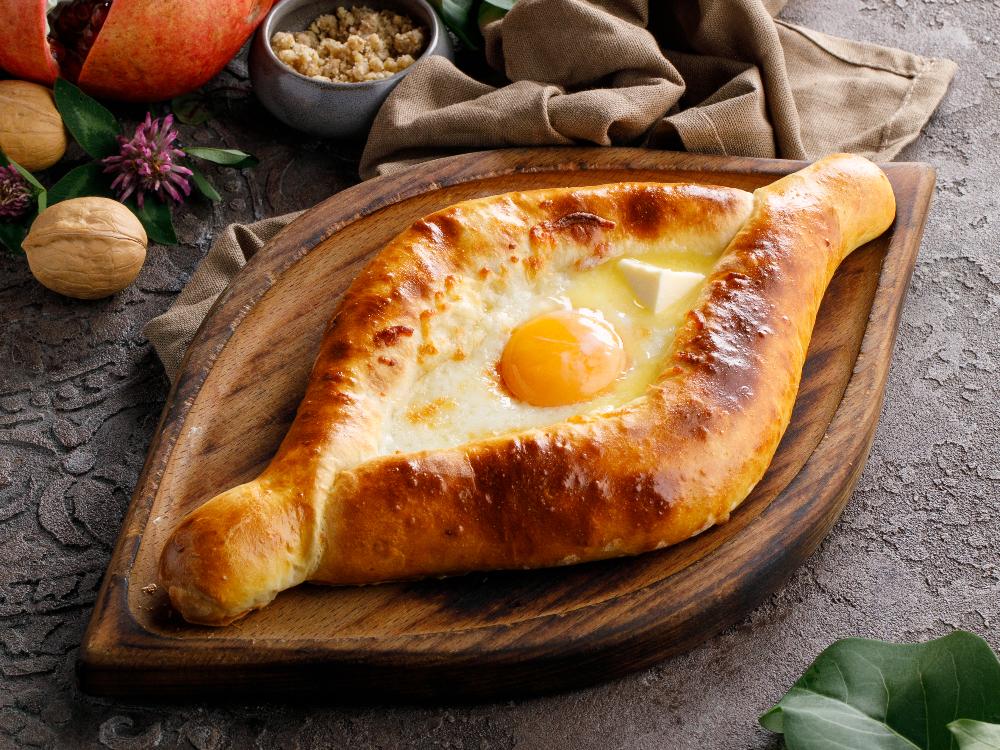 При доставке яйцо замешивается по центру хачапури!