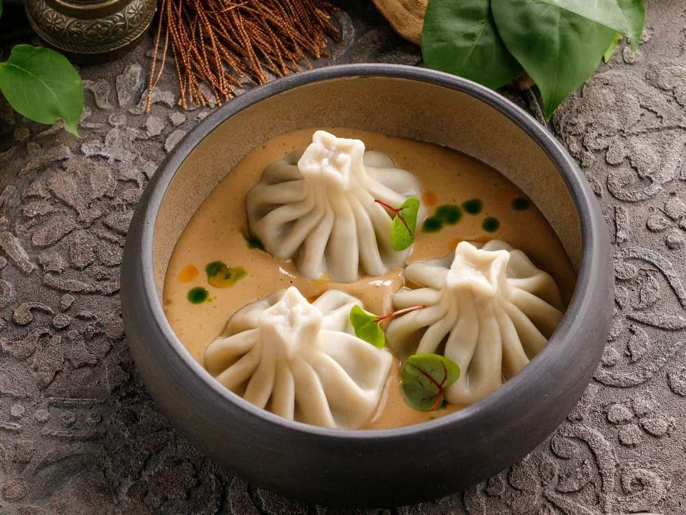Мини-хинкали с мраморной говядиной дополняются пряным перечным соусом с лёгкой остринкой перца чили.