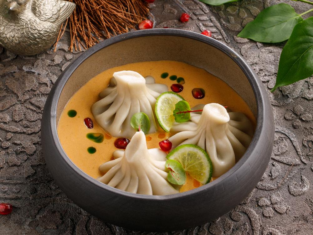 Описание:Состав: Тесто на хинкали( мука, вода, соль), начинка( свинина, говядина, креветки, лук репчатый, кинза, петрушка, перец чили, соль, перец черный молотый, вода, лук зеленый, соус устричный, соус соевый), соус ( соус биск(панцири креветок, морковь, лук репчатый, лук порей, томатная паста, чеснок, перец чили, масло растительное, петрушка, кинза) сливки, паста том ям, лаймы, гранат, микрозелень пакчой, масло зеленое( петрушка, масло растительное, масло оливковое, соль).