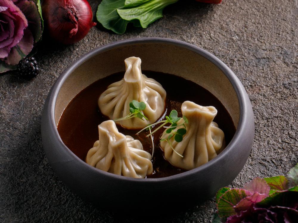Мини хинкали с тыквой и овощным демиглясом