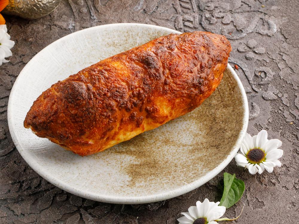 Сосиски, тесто (мука, яйцо, соль, маргарин, молоко, сахар, дрожжи), сыр сулугуни, сыр имеретинский, масло сливочное, льезон (сметана, яйцо куриное).