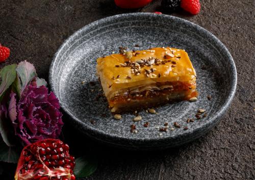 Сочная медовая пахлава с курагой и миксом семечек.